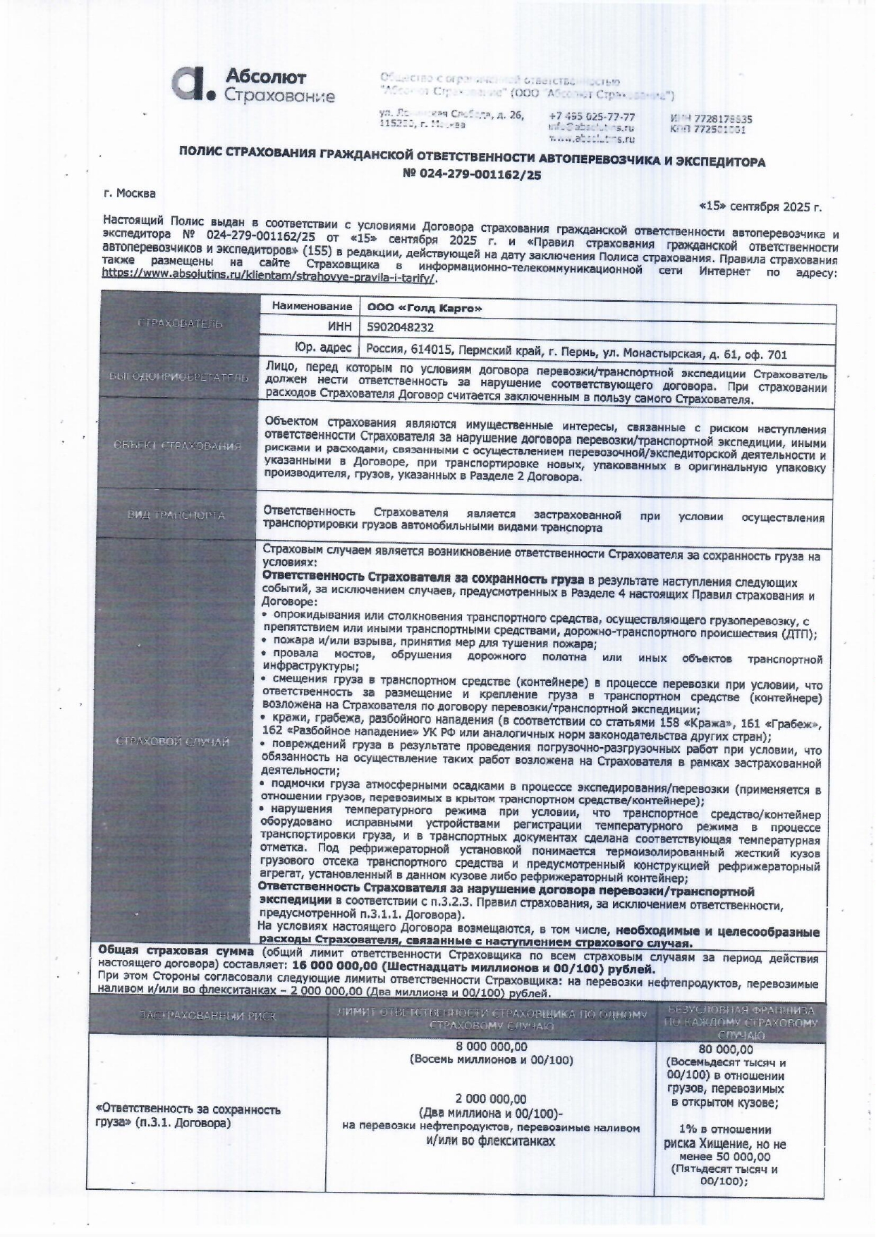 ООО «Голд Карго»