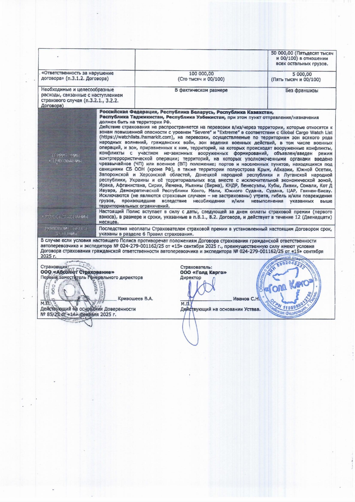 Страхование включено в стоимость
